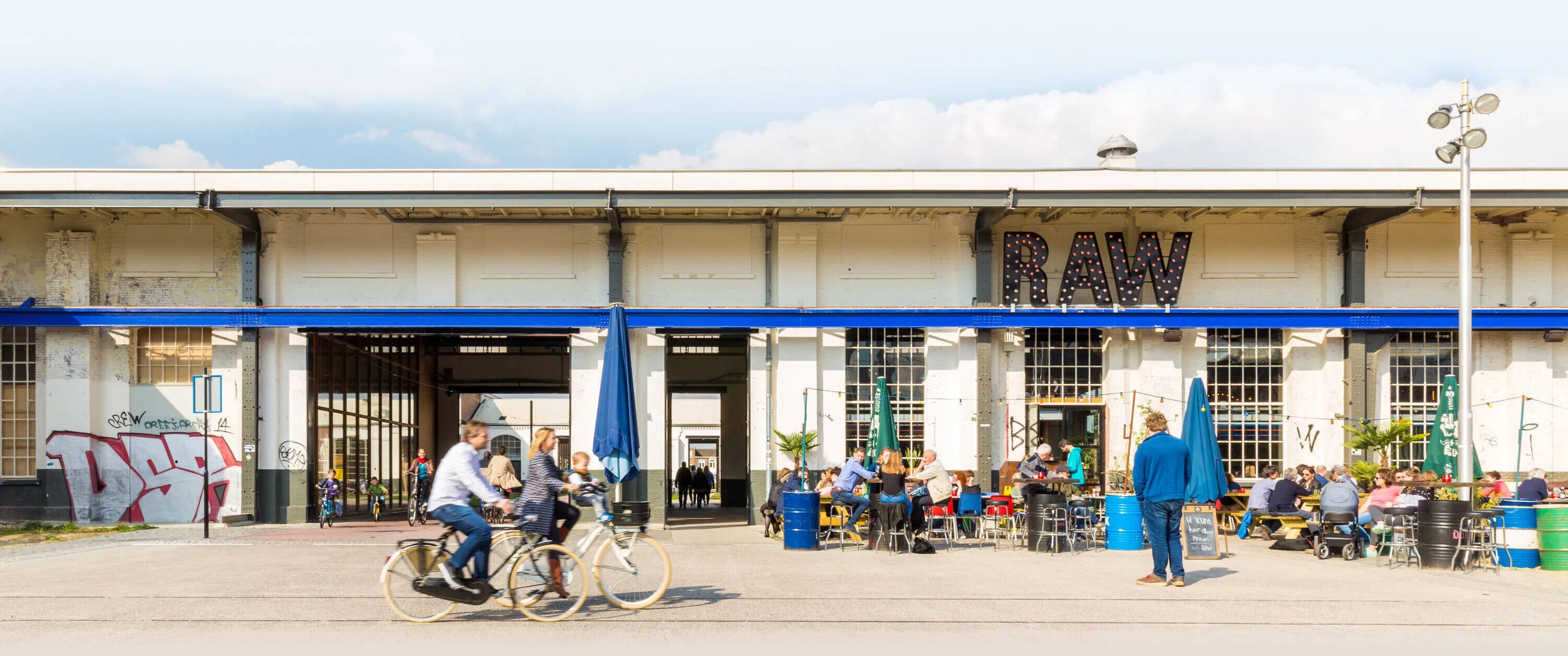 The Spoorzone, an old railway factory in Tilburg, embodies the city’s rugged and unconventional character. Today, it is a breeding ground for creativity, innovation and knowledge, hosting fun events and innovative hospitality concepts.